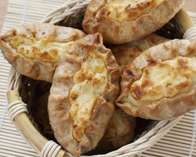 Once the pies are lightly browned, they should be taken out of the oven and dipped one by one very quickly in a deep plate filled with milk. This step prevents the dough from drying out and becoming too hard.